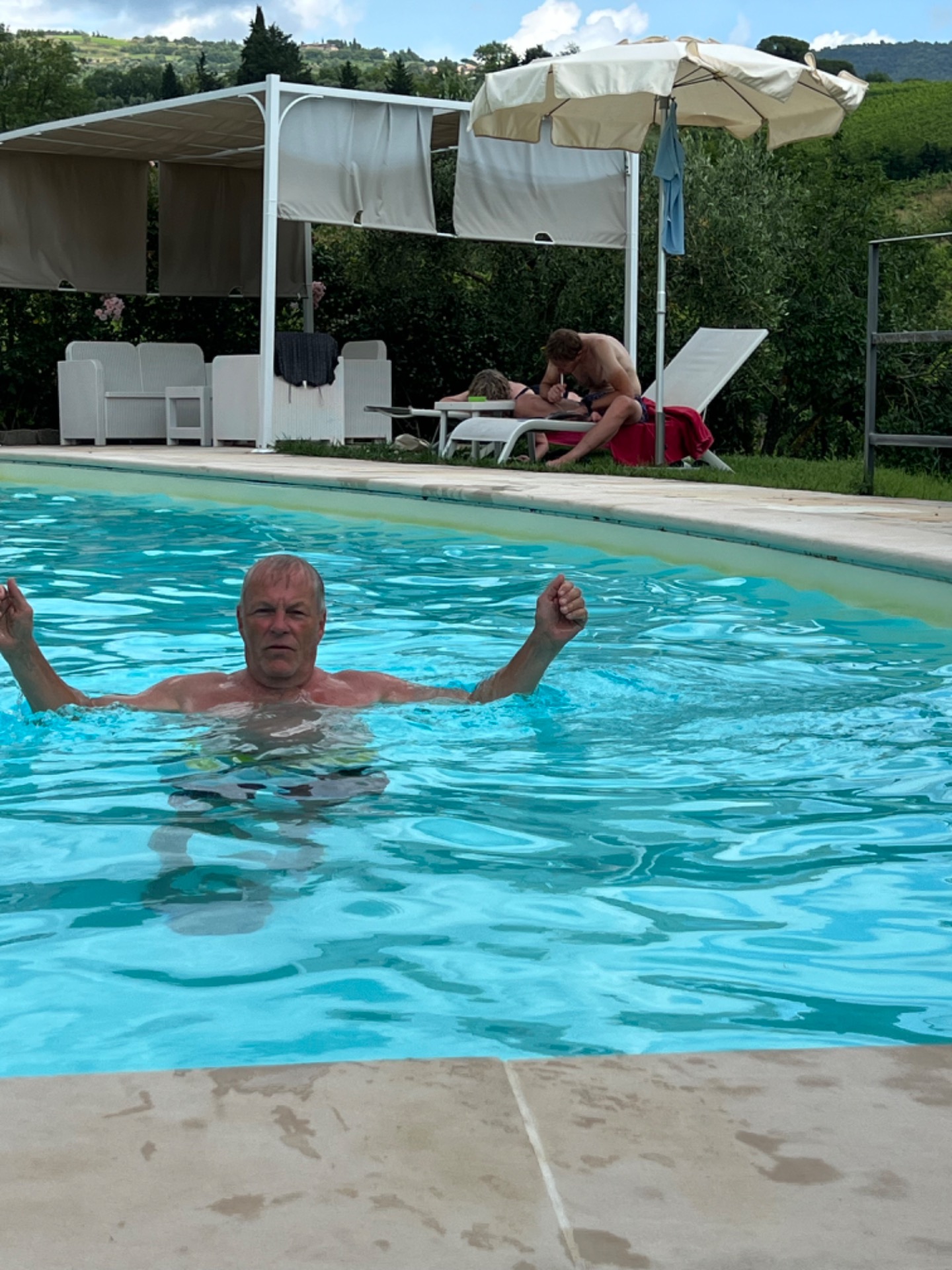 Vi bodde en bit upp på bergssluttningen, på ett bed & breakfast som heter Casale de Masse. Här hade vi en liten lägenhet och det bästa av allt - en charmig uteplats med magisk utsikt över det böljande vackra landskapet. Stället hade också en pool där vi tillbringade ett antal timmar.