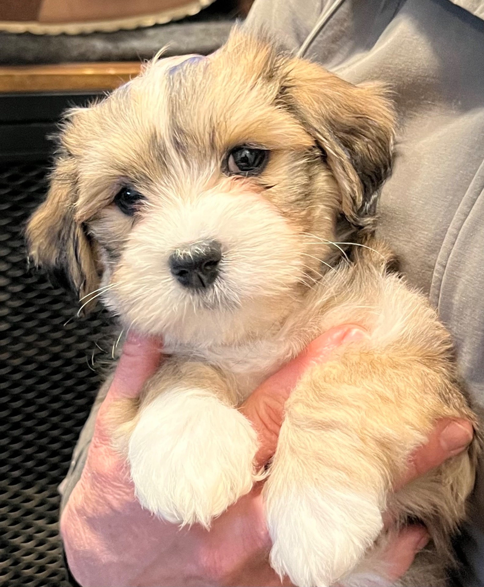Nu är han här - världens finaste Sigge - En bichon havanaisvalp från kennel Baekhagen. Första dygnet har gått jättebra. En liten valp sover ju mycket. Han hittade snabbt ett favoritställe - en filt under soffan. När han är vaken är det bus och upptäcksfärder som gäller. Han är mycket förtjust i att vara ute och går gärna med ut och kissar. Han får glädjefnatt i trädgården och springer runt runt! Sigge är precis så som man önskar sig en valp - nyfiken, glad och trygg och givetvis sockersöt!
